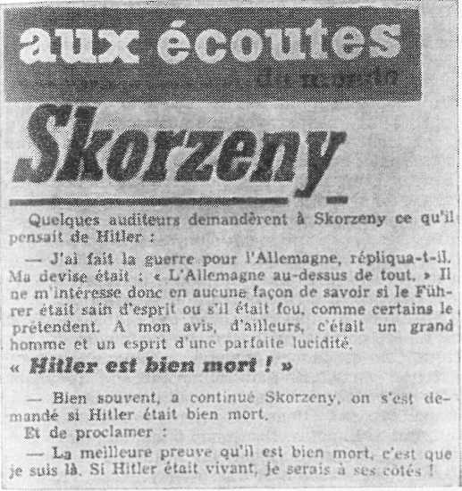 И все же шефа эсэсовской армии диверсантов так и не удалось схватить. А впрочем, пытались ли действительно это сделать?