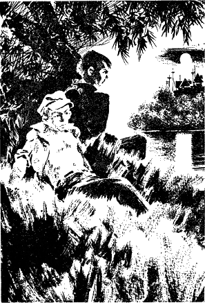 Володя разделся. Он стоял у кромки воды, не решаясь в нее вступить. Река была гладкая, как зеркало, в ней отражался вверх ногами берег с деревьями. Камышинки двоились. Стрекозы с синими в два яруса крылышками. И два голубоватых дымка: здесь — и там, в воде. От реки пахло тиной, цветущими кубышками, от берега — зарослями лебеды, дымом костра.