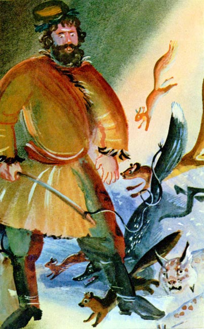 Был он ростом с дерево, силу имел непомерную. Любую птицу на лету без промаха бил, так метко стрелял.