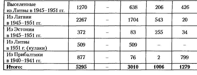 «В Республиках Прибалтики только в 1941–1950 гг. формированиями националистов было совершено 3426 вооруженных нападений, в ходе которых погибли 5155 советских активистов. Органами госбезопасности и войсками было ликвидировано 878 вооруженных групп. В противоповстанческих операциях части внутренних войск НКВД потеряли 533 чел. убитыми и 784 ранеными, потери подразделений Красной Армии составили 42 чел. убитыми и 94 ранеными. Всего внутренние войска НКВД и подразделения Красной Армии потеряли убитыми 575 и ранеными 878 военнослужащих».