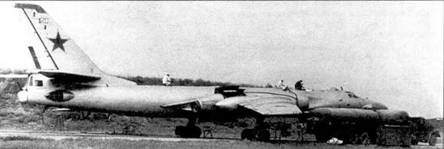 Начиная с 1969 г., на ремонтных предприятиях ВВС и Авиации ВМФ вТу-16К-26 были доработаны 15 самолетов Ту- 16К-11-16КС. В вариант Ту-16КСР- 2-5-11 - один из основных ракетоносных вариантов Ту-16 - были переоборудованы 125 ракетоносцев Ту-16КСР-2-11. Внешним их отличием от Ту-16К-26 стали цельные створки грузоотсека {без следов входного люка оператора). В вариант Ту-16КСР-2-5 были доработаны 110 Ту-16КСР-2А. В отличие от Ту-16К-26 они имели коллиматорный прицел ПКИ, систему слепой посадки СП-50 и, позднее, - станции РЭП СПС-5М и СПС-151/152/153 из комплекта «Сирень». От Ту- 16КСР-2-5-11 внешне эти самолеты отличались отсутствием антенны станции «Рица» на фонаре кабины штурмана и наличием носовой пушечной установки. От исходного Ту-16КСР-2А внешне Ту-16КСР-2-5 отличался антенной станции «Роговица» на фонаре кабины летчиков.