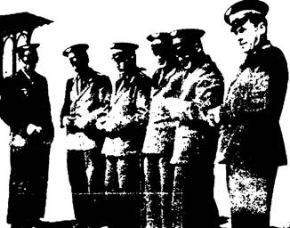 В.Левитан (в фуражке) проводит занятие с молодыми летчиками. Чехословакия, 1945 г.