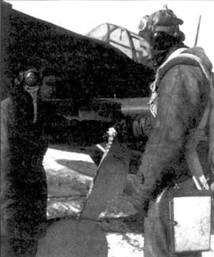 В.Левитан и техник л-т Н.Кульченко у ЛаГГ-3 перед вылетом на штурмовку. Армавир, февраль 1 943 г.