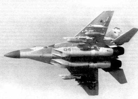 Характеристики ракет К-25 перестали удовлетворять Заказчика. В 1973 г., когда проект МиГ-29Д уже был на пороге защиты, НПО «Вымпел» и «Молния» получили задания на проектирование новой ракеты средней дальности К-27. Она должна была поставляться с активной, пассивной, полуактивной радиолокационными или тепловой ГСН с обычной или «высокоэнергетической» двигательной установкой (ДУ). В базовом варианте ДУ максимальная дальность пуска должна была составлять 70-80, а в «энергетическом» - 100-120 км. К-27 оснастили развитыми аэродинамическими поверхностями, и крепление ракет вплотную к фюзеляжу стало невозможным. От использования К-14 отказались в пользу К-62 и новой ракеты промежуточной дальности К-72. Это оружие отличалось не только техническими, но и политическими преимуществами, т.к. не имело «трофейной» родословной.