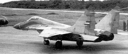 Был решен и вопрос двигателей. Выбор пал на инициативную разработку Ленинградского ГМЗ им, Климова - РД-33 («изд. 59»), спроектированный под руководством СП.Изотова. РД-33 и его одногодок АЛ-21Ф стали первыми советскими серийными двухконтурными двигателями, специально спроектированными для установки на истребители. Помимо двух-контурной схемы, которая с таким трудом завоевала себе место в СССР, они имели еще одну важную особенность. Их система управления была уже не электромеханической, а электронной аналоговой. Это открывало новые возможности для оптимального регулирования работы силовой установки, повышения газодинамической устойчивости и топливной экономичности, снижало массу систем двигателя.
