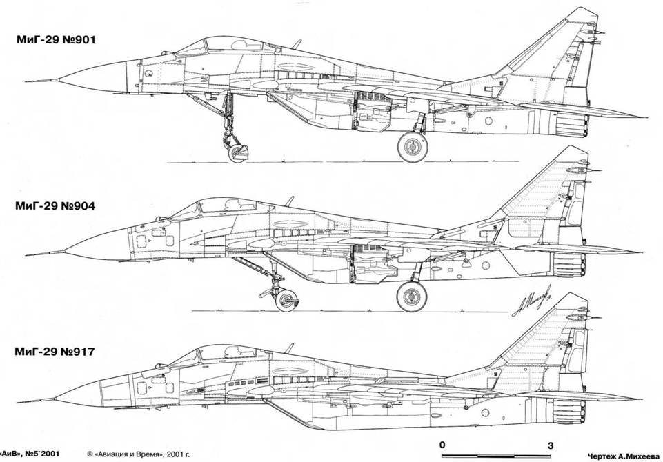 Первым МиГ-29 с полностью укомплектованной СУВ должен был стать самолет №902. Из-за задержек с оборудованием он совершил первый полет лишь 28 декабря 1978 г Но и к этой дате РЛС поставить не успели и начали программу испытаний тепловых ракет К-62М, К-72 и К-27Т, а также комплекса ОЭПрНК-29. В его состав вошли опти ко - эл е ктро н ная прицельная система ОЭПС-29, система навигации СН-29, система управления оружием СУО-29, нашлемная система целеуказания «Щель-3», вычислитель ЦВМ Ц-100. система единой индикации СЕИ-31, фотокино-пулемет и многофункциональные пульты управления. На том же самолете отрабатывалось применение бомбового вооружения и пушки - одноствольного орудия 9А4071 (ГШ-301). Оно было спроектировано тульским КБ в инициативном порядке под патрон от пушки АО-17 с использованием многих решений, примененных в ней. Скорострельность уменьшилась, но и масса орудия снизилась более, чем вдвое.