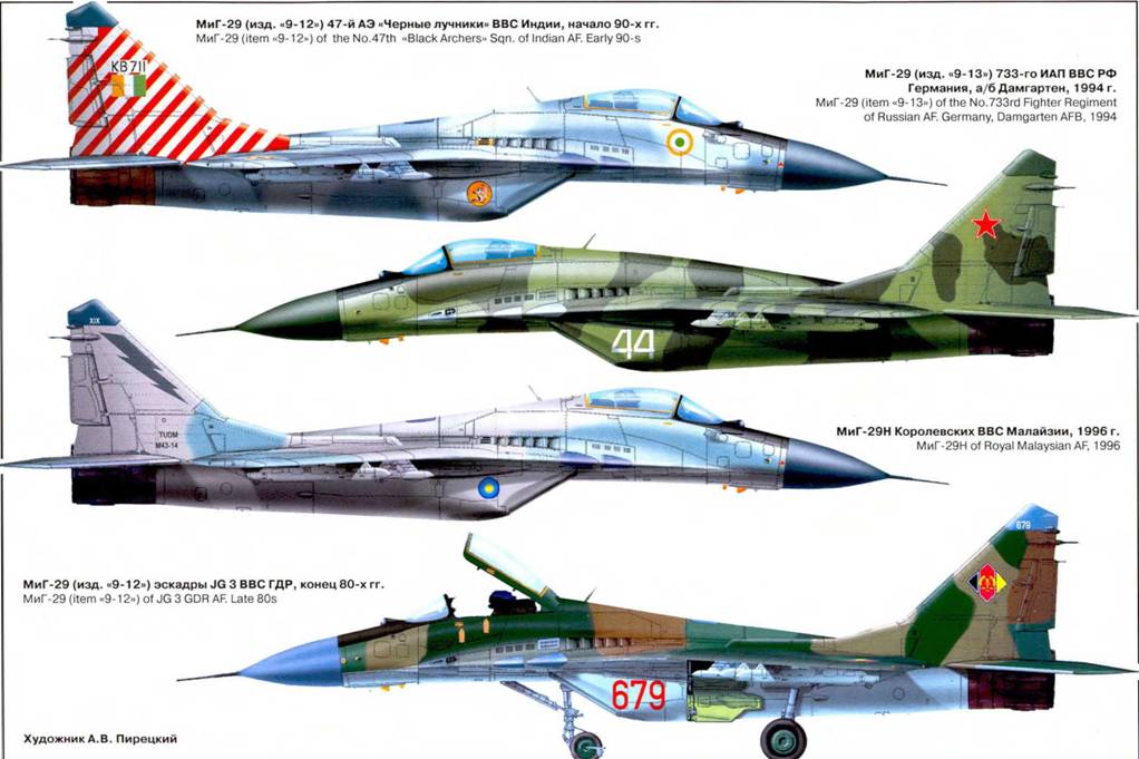 Аналогичная компоновка была «спущена» конструкторским бюро А.И.Микояна*, П.О.Сухого и А.С.Яковлева, которые получили задание на проектирование перспективного фронтового истребителя (ПФИ). Предполагалось за счет ограничения скорости и высотности, установки облегченного БРЭО и экономичных двигателей, а также нового крыла и современной системы управления добиться существенного повышения скороподъемности, горизонтальной и вертикальной маневренности, характеристик разгона и торможения истребителя. Заказчик также требовал повышения дальности полета для завоевания превосходства в воздухе за линией боевого соприкосновения. Практически сразу же всем самолетам были присвоены официальные индексы МиГ-29, Су-27 и Як-45, но они пока были секретными и в переписке использовались обезличивающие цифровые обозначения. Микояновский проект получил обозначение «тема №9». Ведущим по «девятке» стал зам. генерального конструктора А.А.Чумаченко. С самого начала работ в них были вовлечены многие видные специалисты фирмы: Р.А.Беляков, М.РВальденберг, ГА.Седов и др.
