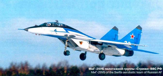 В 1979 г. Государственной комиссии представили эскизный проект и макет самолета, а 29 апреля 1981 г. А.Г.Фастовец совершил на опытной машине №951 первый полет. 23 августа 1982 г. в воздух поднялся второй опытный самолет №952. В конструкцию спарки внесли те усовершенствования, которые накопились за время полетов одноместного самолета, и дело пошло быстро. Госиспытания МиГ-29УБ начались в 1981 г., а в 83-м документы о принятии его на вооружение уже были подписаны.