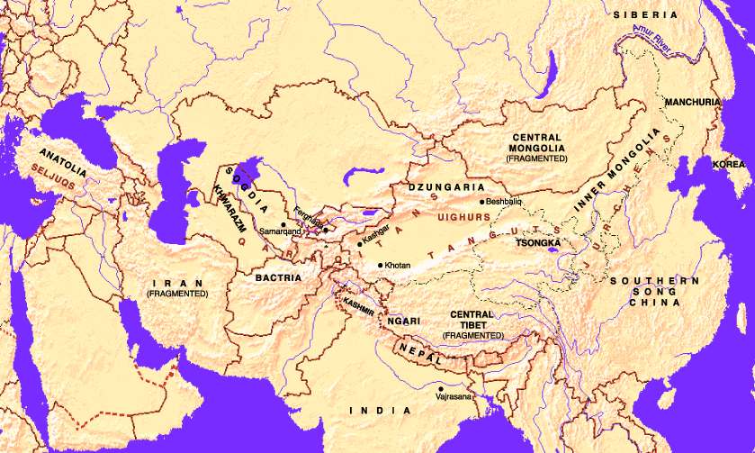 В 1115 году чжурчжэни основали династию Цзинь (годы правления 1115 – 1234) и продолжили расширять свои владения, создавая империю. В 1125 году они разгромили киданей, а в следующем году захватили остальную часть ханьского Китая. Столица ханьцев была перенесена южнее. Таким образом, правление династии Северной Сун подошло к концу и началось правление династии Южной Сун (годы правления 1126 – 1279). Чжурчжэни правили Маньчжурией, юго-восточной Сибирью, северным и центральным ханьским Китаем и Внутренней Монголией. Тангуты располагались на северо-западе, а Монголия распалась на много мелких племенных областей.