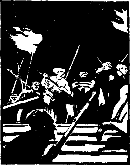 По степи ехали всадники. Утомленные дальней дорогой, кони шли мелким шагом, подминая сухую траву. Всадники, покачиваясь в седлах, вели неторопливый разговор, не перебивая друг друга, — видно, немало дней провели они вместе и уже успели обо всём переговорить. Хотя у всех у них при себе были сабли и ружья, они все же не походили ни на запорожцев, ни на казаков степной охраны. Всадник крайний слева не участвовал в разговоре. Он сидел в седле боком, в правой руке держал длинную, с ременной кистью на конце нагайку. Время от времени он резко взмахивал рукой, и высокий куст сухой тырсы, перерезанный пополам, падал наземь.