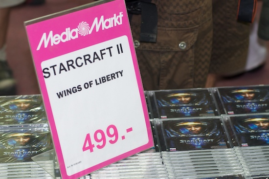 Однако лучшим подарком для собравшейся толпы стала, конечно, возможность пройти через турникеты и приобрести коробку со Starcraft II: Wings of Liberty. Продаётся она по 499 рублей. Подарочное издание в Россию пока не приехало.