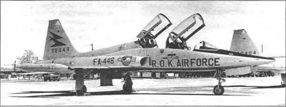 Теперь немного отвлечемся от основной темы и коснемся участия корейских авиаторов в региональных конфликтах за пределами своей родины. В 1960-70-х гг. полем боя «двух миров, двух систем» стал Вьетнам (если быть более точным - весь Индокитай). Сеул направил на помощь главному союзнику и патрону е Южный Вьетнам весьма солидный контингент, включавший пехотные дивизии «Свирепый тигр» и «Белая лошадь», бригаду морской пехоты «Голубой дракон», различного рода вспомогательные и технические части (в общей сложности около 50000 человек). Что касается авиации, то известно, что «Тигры» привезли с собой 11 -ю корректировочную эскадрилью, летавшую на «Сесснах», а затем на вертолетах UH-1D/H. В ходе боевых действий это подразделение занималось ведением авиаразведки, разбрасыванием листовок, эвакуацией раненых и т.п. Несколько машин было повреждено наземным огнем и в летных происшествиях. Единственной безвозвратной потерей стал L-19. сбитый 24 июля 1966 г. огнем ДШК. Пилот л-т Бан И По погиб. Встречаются косвенные данные о том, что южнокорейские авиаторы посещали индокитайский ТВД для прохождения боевой стажировки в составе экипажей ВВС США и Южного Вьетнама, совершив ряд боевых вылетов на F-4f F-5, А-37, вертолетах и транспортных самолетах,