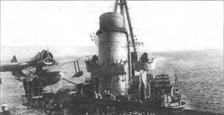 Бе-4, установленный «по-походному» и взлетающий с катапульты крейсера «Молотов». ЧФ, 1944 г.