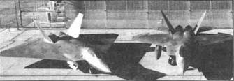 В начале года американская корпорация Lockheed Martin обнародовала новую концепцию создания бомбардировщика FB-22 на базе тактического истребителя F/A-22 Raptor (на фото слева - макет). Она прямо противоположна предыдущей концепции, изучавшейся корпорацией с 2001 г. Если раньше предполагалось удлинение фюзеляжа исходной машины и увеличение его ширины при сохранении несущей системы, то теперь фюзеляж предполагается оставить без изменение зато резко увеличить крыло и упразднить горизонтальное оперение, Это позволит утроить дальность полета по сравнению с истребителем (вариант 2001 г. обещал лишь удвоение) и довести бомбовую нагрузку до 15 т. Ценой вопроса стало уменьшение максимальной скорости полета с М=2 до М=1,92 и маневренной перегрузки с 9д до 6д, Как считает «Локхид», по конструкции, оборудованию и матобеспечению новый самолет будет на 85% идентичен исходному «Рэптору». USAF заявляют о намерении приобрести 50 бомбардировщиков с такими данными. «Локхид» планирует приступить к их серийному производству в 2012 г., за 2 года до прекращения производства F-22.