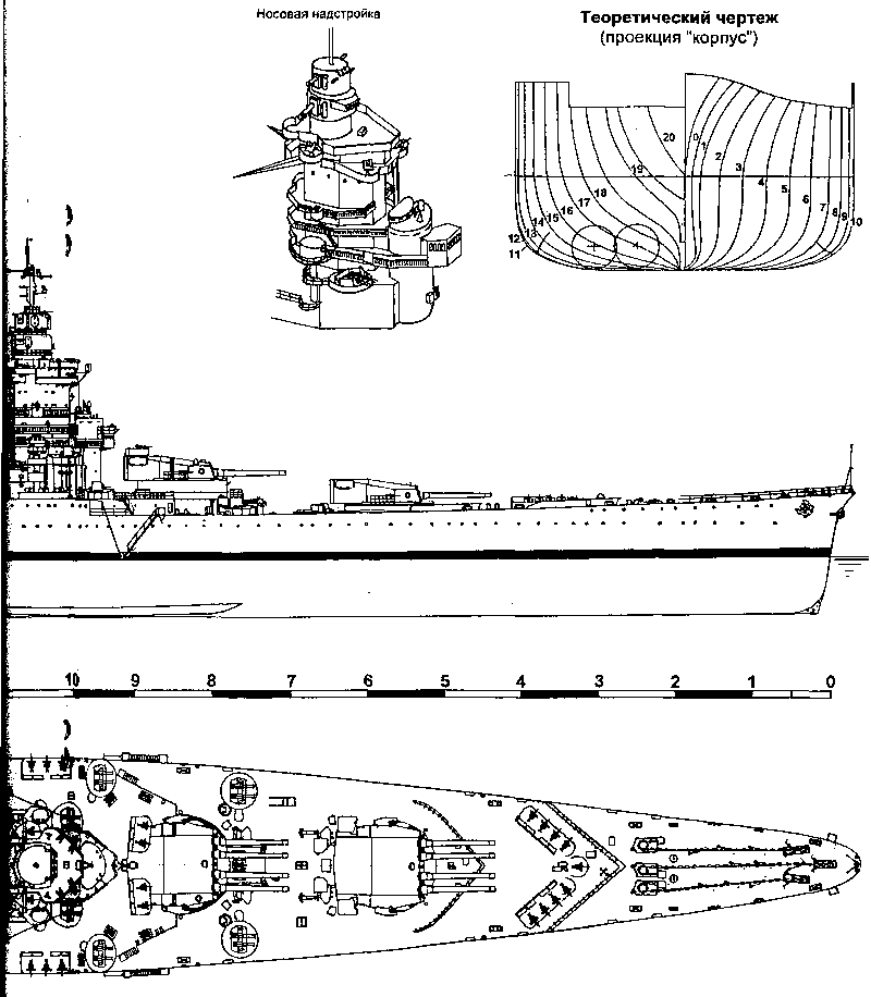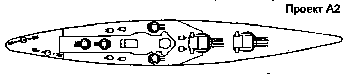 — расположение главной и вспомогательной артиллерии как на «Дюнкерке» (с 380-мм орудиями впереди в двух башнях);
