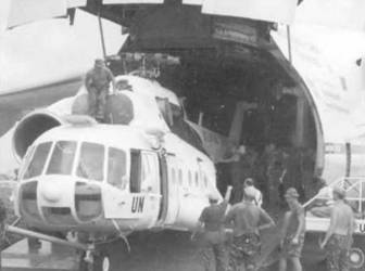 23 декабря Ан-124-100 "Авиалиний Антонова" доставил в столицу Либерии Монровия 4 Ми-8, а также необходимое оборудование и имущество вертолетчиков. Рейс состоялся в рамках завершающего этапа очередной ротации 56-го отдельного вертолетного отряда ВС Украины, действующего в этой стране в рамках миссии ООН Обратным рейсом -Руслан- перевез в Украину вертолеты, у которых закончился межремонтный ресурс. В настоящее время в 56-й ОВО входят 6 Ми-24 и 8 Ми-8 В течение 2005 г украинские вертолетчики выполнили в Либерии 792 полета общей продолжительностью 730 ч, перевезли почти 2000 человек и 100 т груза. Авиаторам приходилось работать в сложных климатических условиях, в районах с недостаточным метеорологическим обеспечением, осуществлять полеты с площадок ограниченных размеров с максимальной взлетной массой. По словам командира отряда п-ка А. Ткаченко. отлично справлялись с заданиями экипажи Ми-8, которые возглавляли п-к И Шендригин. подп-ки А. Пластун и И. Нечипорук, м-р С. Демин, а также экипажи Ми-24 м-ра В. Цапка и к-на В Мальцева.