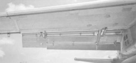 звеном. Внешние – трехщелевые, выдвижные, с фиксированным дефлектором и поворотным хвостовым звеном. Угол отклонения закрылков на взлете – 15', на посадке – 38'. Предкрылок каждой консоли также двухсекционный: внутренняя секция установлена на СЧК, внешняя – на ОЧК. Предкрылки удерживаются пружинными амортизаторами, а в полете выпускаются под действием аэродинамических сил. Левый и правый элероны имеют весовую балансировку и выполнены двухсекционными. Угол отклонения элерона вверх – 24", вниз – 16'. Обе корневые секции элеронов оснащены кинематическими сервокомпенсаторами, кроме того, на левой из них установлен триммер. Сервокомпенсаторы и триммер элеронов изготовлены из стеклотекстолита с пенопластовым наполнителем.