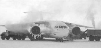 Силовая установка включает также системы: топливную, масляную, противопожарную, запуска, управления и контроля. Топливная система самолета состоит из двух автономных систем – правого и левого полукрыльев. Каждая система обеспечивает свой маршевый двигатель (правая – также и ВСУ) и включает пять мягких топливных баков в центроплане и бак-отсек СЧК. Системы соединены между собой трубопроводом с краном кольцевания. Полная эксплуатационная заправка самолета топливом – 7100 л. Заправка баков может производиться самотеком сверху через заправочные горловины, расположенные на центроплане и СЧК, либо централизованно под давлением через заправочный штуцер, установленный в отсеке шасси левой мотогондолы. Каждый двигатель имеет автономную маслосистему, выполненную по короткозамкнутой схеме, которая обеспечивает подачу масла для смазки и охлаждения двигателя, работы измерителя крутящего момента и управления воздушным винтом. Емкость маслосистемы двигателя – 90 л, заправка маслобака – 32 л. Запуск двигателей на земле – электрический от ВСУ или аэродромного источника постоянного тока. Система запуска включает по два стартер-генератора на двигателе, один из которых после запускаавтоматически переводится в генераторный режим, другой работает вхолостую. Самолет оборудован тремя стационарными противопожарными системами (ППС самолета и две автономные ППС двигателей) и двумя переносными огнетушителями ОР1-2-20-30, находящимися в грузовой кабине. Противопожарная система двигателя, предназначенная для обнаружения и тушения возгорания в его внутренних полостях, имеет один огнетушитель типа 1-4-1 емкостью 4 л. Противопожарная система самолета обеспечивает обнаружение и ликвидацию пожара в топливных отсеках крыла, отсеках маршевых двигателей и ВСУ. Она включает четыре огнетушителя типа 2-8-1 емкостью по 8 л, установленные в хвостовом отсеке левой мотогондолы, четыре системы сигнализации о пожаре ССП-2А, трубопроводы и распылительные коллекторы. Для предотвращения распространения пожара в мотогондолах имеются противопожарные экраны и перегородки из титанового листа.