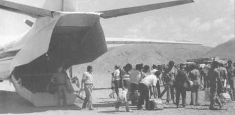 С трудом удалось уговорить их все же дать нам возможность произвести там посадку, ведь отказ от нее означал бы провал нашей миссии… Особенно возражал против нашей посадки эйр-коммодор Лобо. Я его клятвенно заверил, что после остановки самолета останется еще 300 м летного поля. Лобо дал разрешение, но пообещал лично все проконтролировать. Чтобы вписаться в размеры этого аэродромчика, надо было приземлиться не дальше 15-20 м от начала летного поля. Даже незначительная ошибка в расчете могла привести к приземлению в арык, величественно пролегавший по краю аэродрома. Для исключения этого я использовал метод конвейера, т.е. выполнил несколько касаний земли с уходом на второй круг. Лобо, который находился возле стоявшего неподалеку вертолета, принял мой метод за неудачные попытки посадки и перелетел на безопасное расстояние. После третьего «конвейера» мы благополучно приземлились, после остановки до края ВПП оставалось ровно 300 м. Слово удалось сдержать, хотя самолет все равно пришлось дорабатывать. Через семь лет серийные Ан-32 уверенно оседлали такие аэродромы».