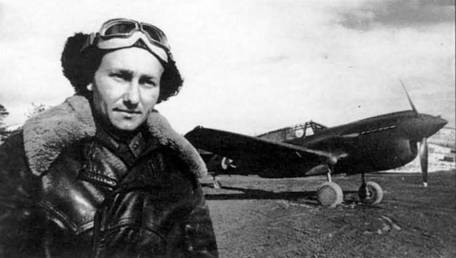 Командир звена 20-го ГИАП л-т А Хлобыстов. На заднем плане – истребитель Р-40Е-1, Аэродром Мурмаши, Карельский фронт, май 1942 г.