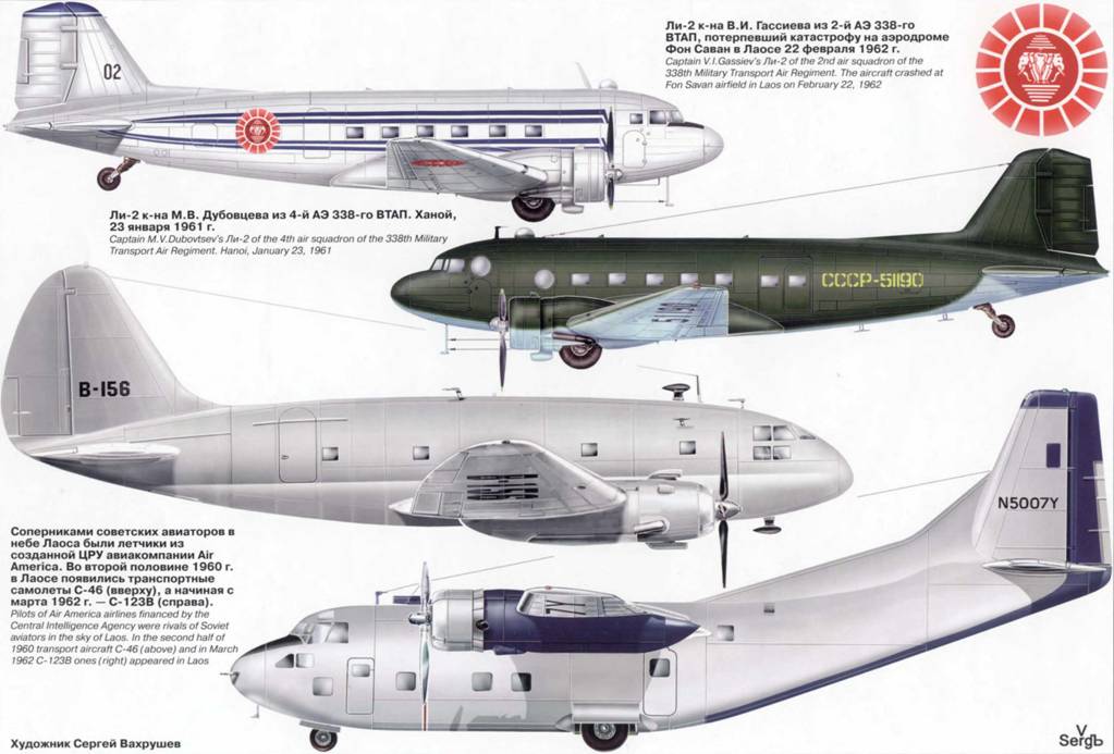 ма. а также проводилось обучение вьетнамских штурманов, борттехников и десантников. Советским авиаторам пришлось действовать в сложных условиях: непривычный климат, гористая местность, угроза обстрелов в воздухе и на земле. Большинство аэродромов на территории Лаоса (Нам Бак, Ланг Сон, Катби. Кюндетюм, Кеп) представляли собой небольшие полевые площадки со сложными подходами, причем со многими отсутствовала радиосвязь. Однако, пожалуй, самым сложным был крошечный аэродром Сам Нео (1100 м над уровнем моря), который от позиций неприятеля отделяли всего 5 км. Его зажатая среди гор полоса шириной 30 м и длиной 1000 м ограничивалась обрывами. Единственный подход к ней прикрывала «торчавшая» в километре от торца ВПП возвышенность, и при заходе на посадку приходилось буквально скользить по ее склону, «брея» верхушки деревьев. Уйти на второй круг было невозможно, так как за ущельем, в которое упиралась полоса, поднимались высокие горы. На аэродроме отсутствовало даже место для сруливания самолетов – слева находился склон с террасами рисовых чек. а справа начиналась болотистая долина реки. О коварстве Сам Нео красноречиво свидетельствовало целое кладбище французских самолетов, разбившихся там еще в колониальные времена, и С-47, потерпевший крушение относительно недавно.