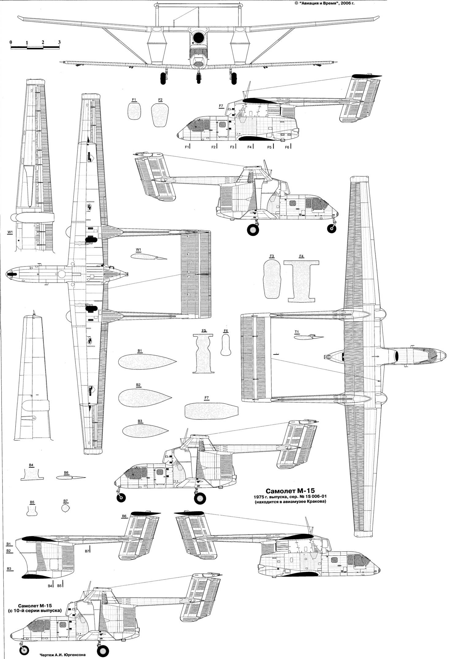 Новое ОКБ приступило к работе над эскизным проектом и начало строить модель для испытаний в аэродинамической трубе ЦАГИ. Аэродинамический расчет показал: чтобы возить 2 т полезной нагрузки с грунтовой площадки длиной 550 м (как Ан-2) при выбранном двигателе, нужно иметь минимальный коэффициент лобового сопротивления Ск т не более 0,028. Однако продувка модели дала гораздо большую величину. Тогда начали доводку аэродинамики модели. Сначала улучшили сопряжение крыла и фюзеляжа. По этому поводу О.В. Флоринский, в то время начальник отдела аэродинамики «почтового ящика 4», рассказал следующую историю: «будучи в командировке в ЦАГИ, я увидел в лаборатории модель самолета Измайлова И-711, в будущем М-15. Я был удивлен некоторыми аэродинамическими огрехами и, будучи его другом, взял в руки пластилин и начал лепить зализы на стыках крыла с фюзеляжем. В это же время в ЦАГИ были и другие сотрудники нашего ОКБ Когда я возвратился из командировки, Олег Константинович уже знал о моих художествах. Он позвонил и с неудовольствием сказал мне, что я бы лучше так «вылизывал» Ан-2, Я занялся Ан-2, но там ничего значительного сделать не удалось. Олег Константинович ничего не забыл, и через пару месяцев спросил, что мы сделали. Я ответил, что он в свое время так -вылизал Ан-2. что нам после него делать нечего. Инцидент был исчерпан».