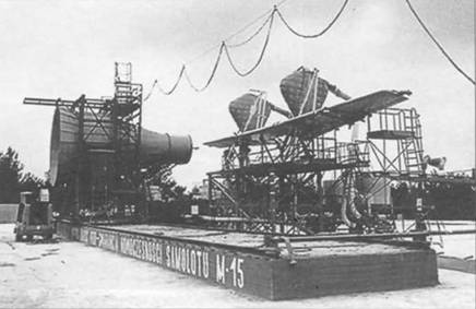 В Варшаве в Институте авиации построили летающую лабораторию на базе Ан-2, получившую название «Ляля-один», производное от польского LL-1 (Latajece Laboratorium). Это было довольно необычное сооружение. Если смотреть спереди – самолет Ан-2. сзади – самолет времен братьев Райт. Двигатель АИ-25 установили в фюзеляже, позади химбака. Воздухозаборник закрепили на правом борту фюзеляжа. Вместо хвостовой части фюзеляжа и оперения Ан-2 использовалась ферма из труб, на которой крепилось некое подобие оперения будущего самолета М-15. сделанное из элементов оперения Ан-2. Под нижним крылом располагался канал прямоугольного сечения, куда высыпались химикаты из бака. Все работы выполнялись в хорошем темпе. Денег не жалели. «Ляля-один» начала летать в феврале 1972 г., а в апреле был выполнен первый взлет с обоими работающими двигателями – и поршневым, и реактивным, С этого момента «летающий агростенд» начал выдавать информацию о взаимодействии реактивной струи двигателя и шлейфа химикатов из системы рассеивания. Изучалось также влияние струи на посевы и поверхность поля. Полеты показали, что при достаточно высоком расположении двигателя его струя практически не влияет на поведение химикатов и не поднимает тучи пыли на грунтовых площадках. Это позволило снять некоторые критические замечания в адрес проекта.