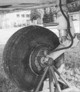 Шасси самолета – трехстоечное с носовой опорой. Каждая стойка оснащена двумя колесами. Колеса основных опор размером 950x300 мм, тормозные. Передние колеса размером 620x180 мм, нетормозные. Носовая опора – управляемая с помощью гидропривода от педалей управления самолетом. Стойки шасси убираются по полету.