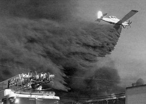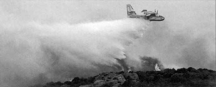 Противопожарное оборудование самолета включает две группы водяных баков, расположенных под полом грузовой кабины. Каждая группа состоит из правого и левого баков, разделенных продольными перегородками на две секции. Каждая секция оснащена створкой для сброса воды и дренажным патрубком, соединяющим бак с атмосферой. В межбаковом отсеке за реданом лодки имеются устройства для забора воды на глиссировании, связанные трубопроводами с водяными баками. В этом же отсеке расположены агрегаты системы заправки водой на аэродроме, устройства для управления водозаборниками и приготовления огнегасящих растворов.