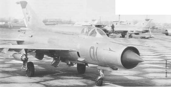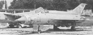 МиГ-21бис (зав. Ns 75002198), оборудованный дополнительной противопомпажной системой. После завершения летной жизни самолет служил учебным пособием в Киевском институте ВВС, пока его не отправили на слом