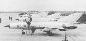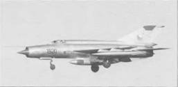Аналогичный самолет для советских ВВС оснащенный прицелом РП-22, получил название МиГ-21СМТ Его дальность по сравнению с МиГ-21 СМ увеличилась на 200-250 км, но летные характеристики, особенно маневренность, значительно ухудшились: практический потолок снизился до 17300 м, а время набора высоты 16800 м увеличилось до 9 минут. Несмотря на это. было принято решение запустить МиГ-21 СМТ в серию. В 1971-72 гг. он выпускался в Горьком под шифром "изделие 50" В НАТО самолет получил кодовое обозначение Fishbed-K.