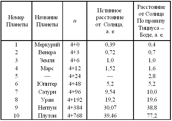 Мы уже говорили, что правило Тициуса-Боде — это не закон, подобный, например, законам Кеплера или Ньютона, а правило, которое было получено из анализа имеющихся данных о расстояниях планет от Солнца. Просто некое удивительное соотношение, мимо которого проходили долгое время. Никакого теоретического обоснования правило Тициуса-Боде не имеет. Конечно, отклонения от правила вполне естественны. Во всяком случае, их можно было ожидать. Самые серьезные отклонения проявляются по отношению к Нептуну и Плутону.