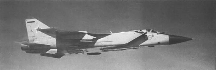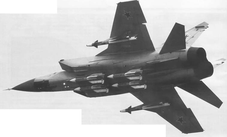 Немало проблем было связано с еще не доведенной СУВ. Тем не менее возможности нового перехватчика поражали даже видавших виды испытателей. Так, 15 февраля 1978 г. в Ахтубинске был успешно проведен уникальный летный эксперимент по обнаружению, захвату и сопровождению 10 воздушных целей (Ту-16 и Ил-28). летевших широким фронтом (порядка 150 км) в большом диапазоне высот. 28 августа того же года МиГ-31 успешно поразил четырьмя одновременно пущенными ракетами К-33 четыре радиоуправляемые мишени. В октябре космическая разведка США засекла успешный перехват маловысотной мишени новым советским истребителем. Факт стал известен общественности, и пресс-секретарю Пентагона Томасу Россу пришлось дезавуировать свое недавнее заявление: «…нет доказательств, что Советы могут сбивать крылатые ракеты или мишени, имитирующие такие ракеты».