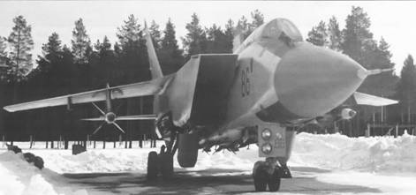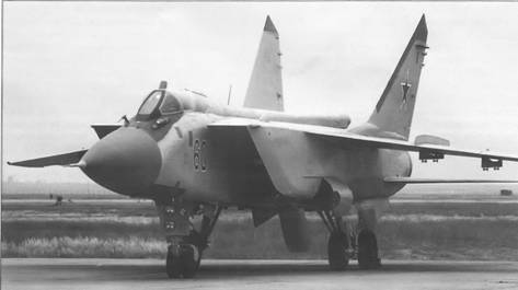 Первый МиГ-31, полностью оснащенный для дозаправок в воздухе и дальних полетов (сер. № 5902). Штанга дозаправки выпущена