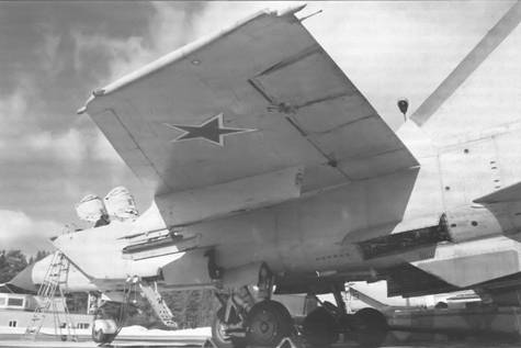 Под крыло МиГ-31 подвешивались ракеты средней дальности Р-40ТД (слева) и ближнего боя Р-60М