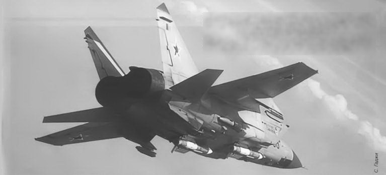 Тем временем стали проводить испытания МиГ-31 по специальным программам. В одном из таких полетов на самолете № 0303 (борт «303») в аварийную ситуацию попал экипаж в составе летчика В.Е. Меницкого и штурмана-оператора В.В. Рындина. Из-за разрушения одного из сварных швов в топливопроводе образовалась дыра диаметром примерно 80 мм, через которую хлынуло горючее. Пожар не начался лишь потому, что двухконтурные двигатели МиГ-31 были относительно холодными. Приборы показывали быструю потерю топлива, и казалось, что до ближайшего аэродрома дотянуть не удастся.