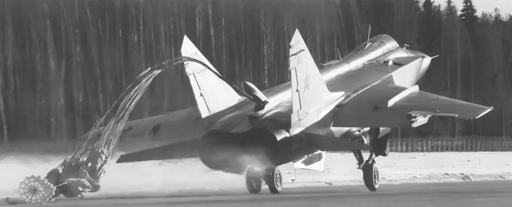 Испытания проходили в целом удовлетворительно, хотя постоянно возникали различного рода проблемы. Например, в одном из полетов на высоте 15000 м при скорости 2,6 М и перегрузке в 5 единиц на фюзеляже перехватчика, пилотируемого Крутовым, появились трещины. В другом полете, при испытании на прочность, на сверхзвуковой скорости и малой высоте у обоих двигателей разрушились створки форсажных камер. 20 сентября 1979 г. в Ахтубинске разбился первый серийный МиГ-31, оказавшийся единственной потерей в ходе ГСИ. Полет выполняли летчик Остапенко и штурман Попов. Вскоре после взлета на скорости 1000 км/ч сработала сигнализация о пожаре левого двигателя. Летчик выключил его. Машина была заправлена топливом «под завязку», а поскольку точной информации о том, что и где горит, не было, то сливать его представлялось неразумным. МиГ-31 мог лететь с большим остатком топлива на одном двигателе со снижением либо на форсаже, который при пожаре любого из двигателей использовать было нельзя. Через 20 с ситуация еще более осложнилась – сигнализация сообщила о пожаре сразу обоих двигателей. Остапенко вновь запустил левый и, когда тот набрал нужные обороты, отключил правый. Но высота продолжала падать. Речевой информатор РИ-65. прозванный «Ритой», женским голосом продолжал извещать о пожаре. Экипаж боролся с аварийной ситуацией 6 мин 54 с, но на высоте 350 м был вынужден катапультироваться.
