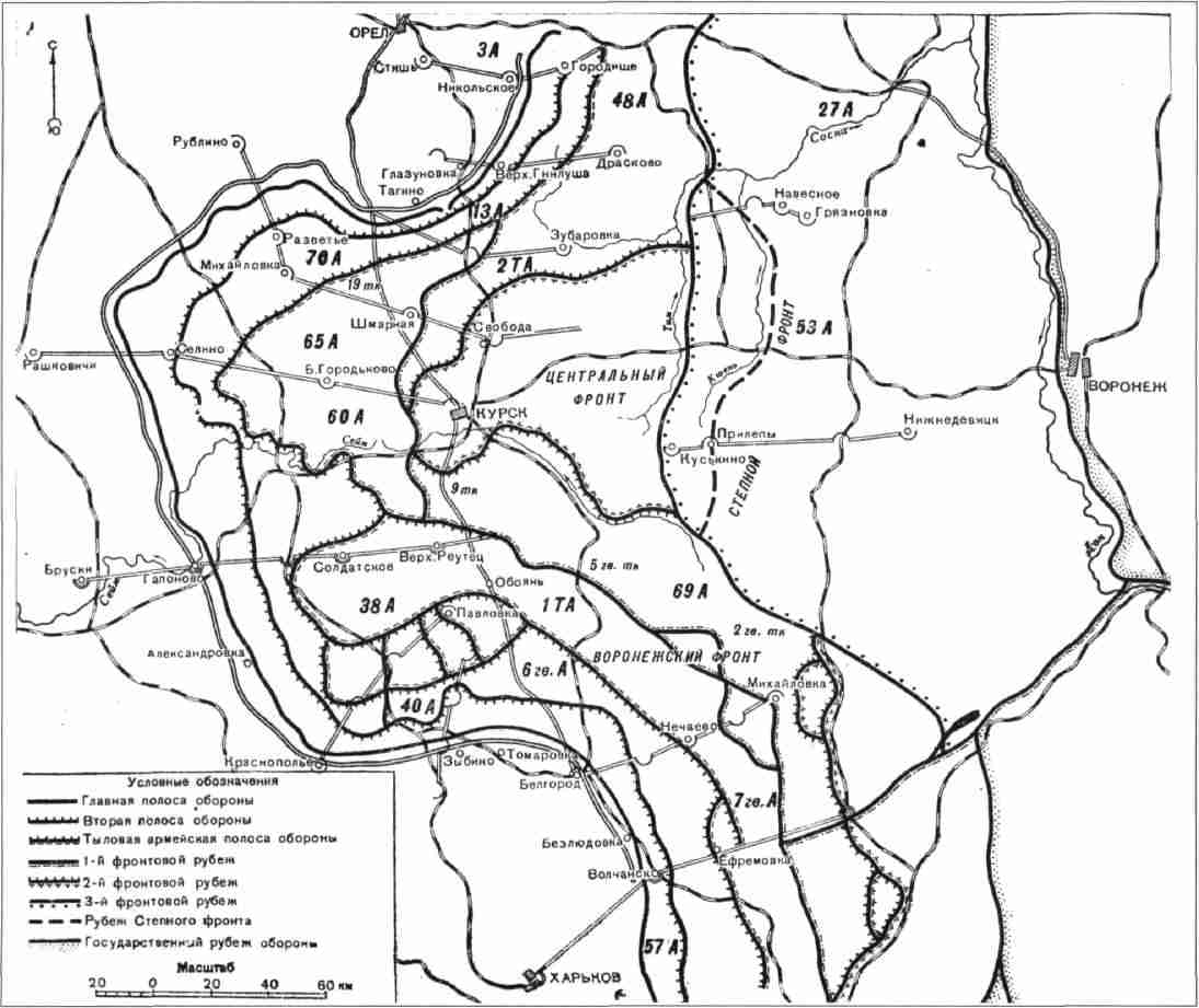 После завершения зимнего 1942–43 гг. наступления Красной Армии и контрудара немецкой оперативной группы «Кемпф» Восточный фронт в районе городов Орёл-Курск-Белгород принял причудливые очертания. В районе Орла линия фронта дугой вдавалась в расположение советских войск, а в районе Курска — наоборот, образовывала впадину в западном направлении. Эта характерная конфигурация фронта подсказала немецкому командованию план весенне-летней кампании 1943 г., в котором ставка делалась на окружение советских войск под Курском.