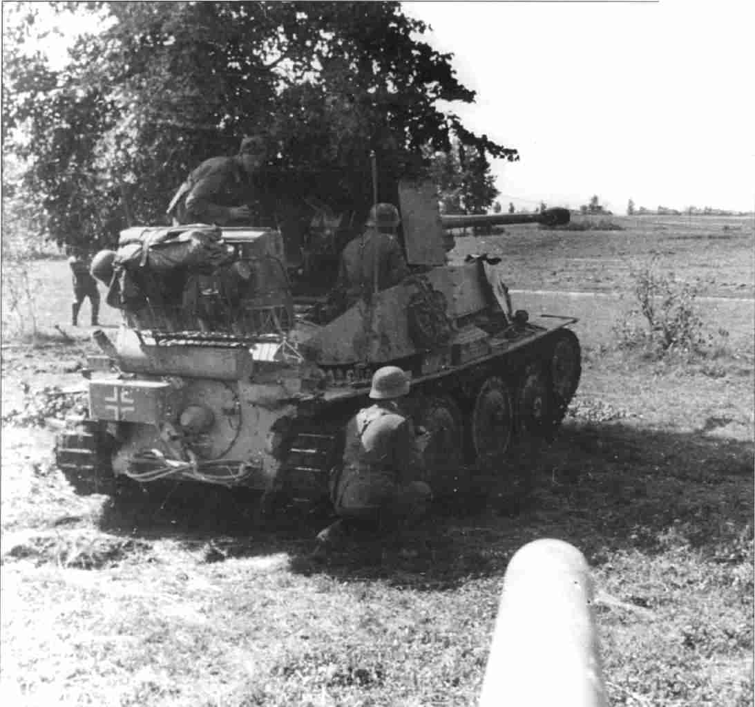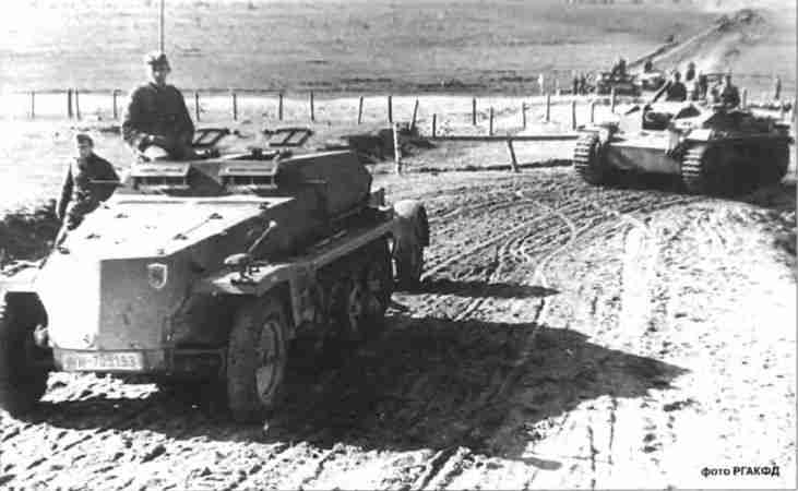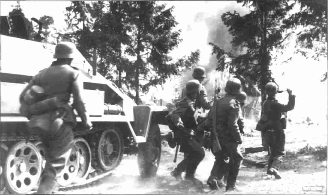 Before offensive. A «Marder III» and panzergrenadiers on initial position. July 1943.