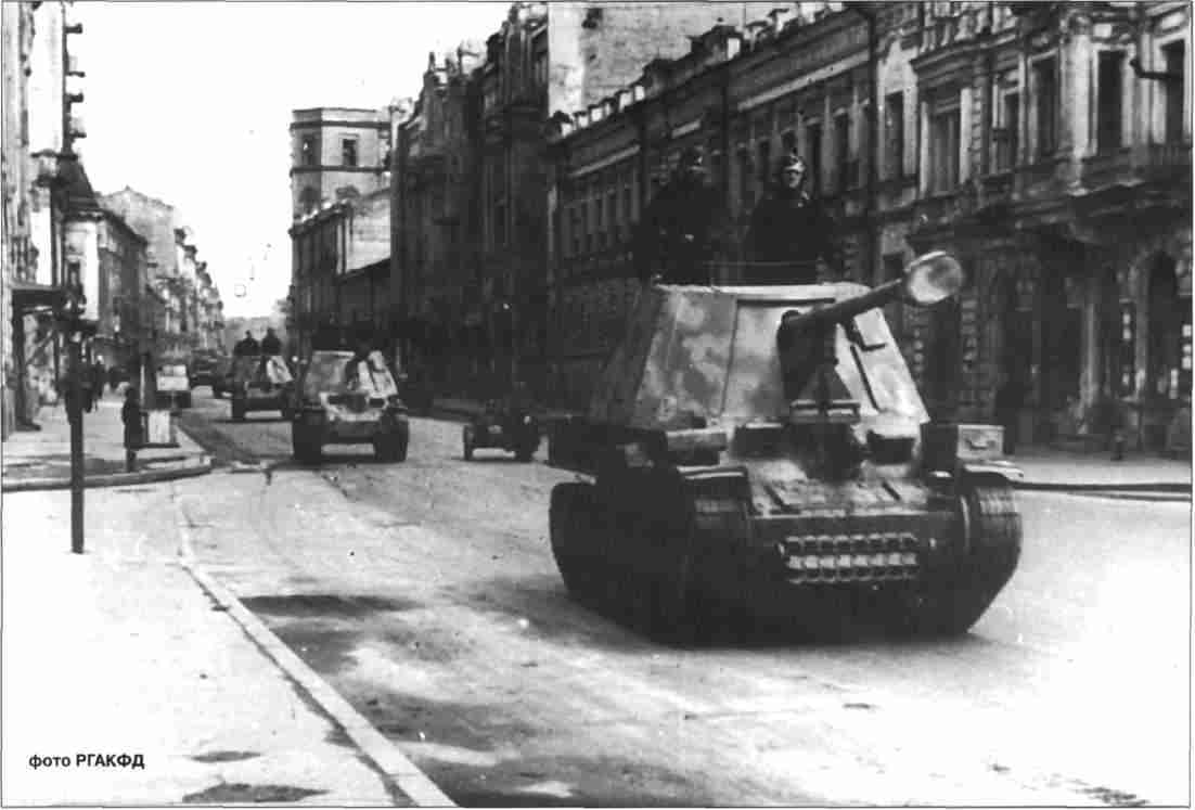 Subdivision of 15-cm SP guns on French «Lorraine» chassis before action. Orel area, June 1943.