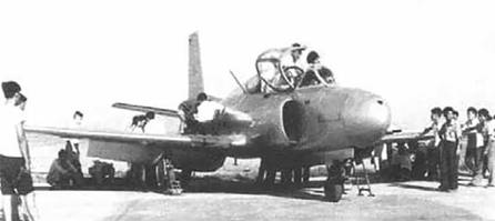 Первый в истории ночной воздушный бой между реактивными самолетами состоялся 3 ноября 1952 г. Тогда оператор РЛС «Скайнайта» 513-й эскадрильи мастер-сержант X Хоглинд из экипажа майора У. Страйона обнаружил в ночном небе одиночную цель. После сближения с ней Страттон открыл огонь из всех четырех пушек. Согласно докладу майора, в самолет противника, который он идентифицировал как Як-15. попало минимум три снаряда, после чего он провалился вниз и загорел ся. Однако Страттон ошибся, причем, ошибся трижды. Во-первых, он стрелял не по Як-15, я по МиГ-15 из 147-го ГИАП, во- вторых. он его не сбил, а только повредил, и в-третьих, в самолет попало не три, а 14 снарядов, что не помешало советскому летчику старшему л-ту В. Д. Вишняку долететь до аэродрома Мяогоу и посадить поврежденную машину.