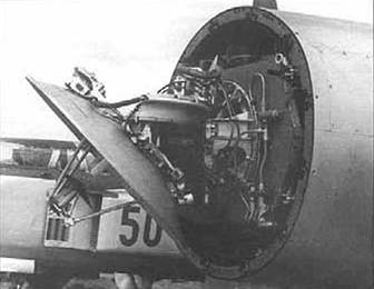 Фото-кинопулемет и антенны, установленные снизу носовой части Су-15