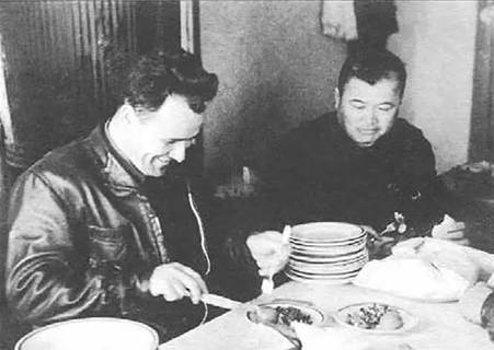 В ту ночь над Аньдуном. что находится на китайской территории как раз напротив Синайджу. появился разведчик RВ 29 (по другим данным – RB-50), у которого, видимо, была задача сфотографировать результаты налета на Синайджу. Он попал в лучи прожекторов и был атакован старшим л-том Хабиеным. После первой же атаки разведчик загорелся и стал разрушиться и воздухе. Трое человек из его экипажа погибли, а 11 попали в плен к китайцам. в т. ч. командир 581-го полка связи п-к Д. Н, Арнольд-младший и командир 91-й разведывательной эскадрильи м-р У. Х. Баумер. С потерей этой машины (сер. N«44-62217) американцы согласились, заявив при этом, что в ту ночь экипаж F3D-2N из 513-й эскадрильи е составе м-ра Э. Дана и мастер-сержанта Л. Фортина, прикрывая В-29. сбил один МиГ-15 в районе Саншина. Неизвестно, кого перехватил экипаж м-ра Дана, но все советские ночные перехватчики благополучно вернулись на свои аэродромы, не получив никаких повреждений.