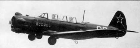 Стоит сказать несколько слов об упомянутых двигателях Мотор А Д. Швецова М-11 был в ту пору основным для легких самолетов. Его вариант М-11ФМ имел мощность 140 л.с., но в 1946 г. появился еще более форсированный М-11ФР со взлетной мощностью 160 л.с. Двигатель М -12 был разработан М А. Коссовым в 1942 г. Как и М-11, это была пятицилиндровая звезда воздушного охлаждения, без редуктора и нагнетателя Конструкция М-12 включала некоторые узлы и детали двигателя М-11Д и ранее разработанного Коссовым мотора МГ-11. В сравнении с М-11 новый двигатель был значительно более форсирован по оборотам и степени сжатия. Он должен был выдавать мощность 190-200 л.с. Два опытных образца этого мотора проходили заводские испытания с сентября 1942 г. В следующем году М-12 испытывался на У-2, а также ставился на один УТ-1 В марте 1944 г. двигатель проходил стендовые Госиспытания, но они были прекращены после поломки. В общей сложности было построено 6 или 7 опытных экземпляров М-12. работа над которым продолжалась до осени 1944 г. Позже узлы этого двигателя были скомбинированы с группой цилиндров от М-11Д. в результате появился М-11ФР, которому и суждено было стать «сердцем» Як-18.