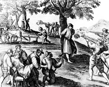 Дряхлеющий феодальный мир попытался взять реванш. Под эгидой папства и реакционной Испании — первой колониальной державы, претендовавшей на мировое господство, — началось попятное движение, называемое обычно Контрреформацией или «католической реакцией». Его главными подвигами стало создание ордена иезуитов (1540 г.) — передового отряда католицизма, безудержный разгул изуверской испанской инквизиции, моральное и физическое истребление любых форм инакомыслия — будь то «запрещенные» книги, «крамольные» проповеди или же сами носители «крамолы». Все это вызвало в ряде стран массовые кровавые столкновения, известные под именем Религиозных войн и завершившиеся только к середине следующего века общеевропейской Тридцатилетней войной (1618–1648), приведшей наконец на некоторое время к более или менее устойчивому политическому и религиозному размежеванию в Европе.