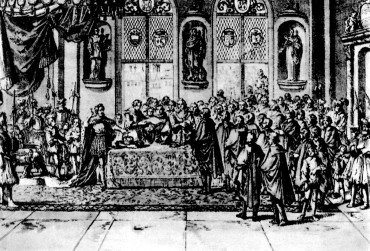 Быстрые и решительные успехи французских королей на пути централизации страны в значительной мере объясняются тем, что они рано нашли верного и устойчивого союзника на этом пути. Таким союзником оказались сначала города, а затем молодая буржуазия — главный выкормыш тех же городов. Союз королевской власти с городами и позже с буржуазией был исторически прогрессивным явлением, одинаково выгодным обоим союзникам и всей стране в целом: королям он давал силы бороться с сепаратизмом феодалов, городам обеспечивал быстроту и стабильность развития, создавая единый внутренний рынок, Францию в целом делал централизованным и могущественным государством. Вместе с тем, союз этот вносил известные коррективы в отношения монархии с феодальным дворянством — все еще господствующим классом средневековья. По мере усиления короля и превращения его в абсолютного монарха дворянство, в прошлом более или менее однородное, расслаиваюсь на две взаимно противоположные части: дворянство придворное, окружавшее престол, и дворянство провинциальное — всю остальную массу мелких, средних и крупных феодалов страны. Дворянство придворное жило целиком за счет государственного пирога, поставлямого налогоплательщиками. Дворянство провинциальное к этому пирогу доступа не имело и вынуждено было довольствоваться трофеями феодальных войн и податями со своих крепостных. Однако с конца XV — начала XVI века оба эти источника начали иссякать: изобретение пороха и огнестрельного оружия понизили возможности феодала в войне, и вскоре дворянина-рыцаря здесь успешно заменил солдат-ландскнехт, а «революция цен», связанная с открытием Америки и морского пути в Индию, резко понизила реальную феодальную ренту — стоимость тех денег, которые помещик выколачивал из своих крестьян.