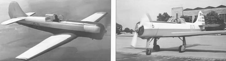 Серийный Як-18ПМ в полете. Справа: Як-18ПМ (борт 07) – участник чемпионата мира в Халлавингтоне. 1970 г.