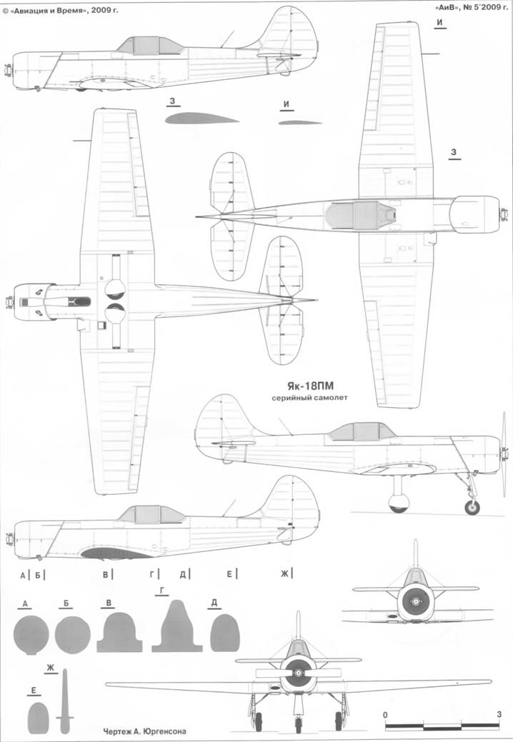 2 у первых экземпляров Як-18ПМ). Площадь элеронов осталась такой же, как у серийного Як-18П – 1,94 м