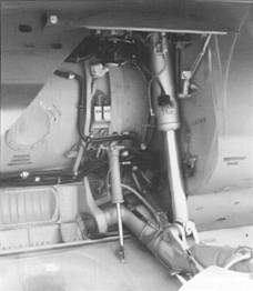 Внизу: передняя опора шасси и ниша правой основной опоры шасси