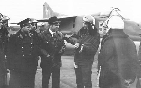 Шеф-пилот микояновской фирмы А.В. Федотов (в центре) во время посещения строевого авиаполка
